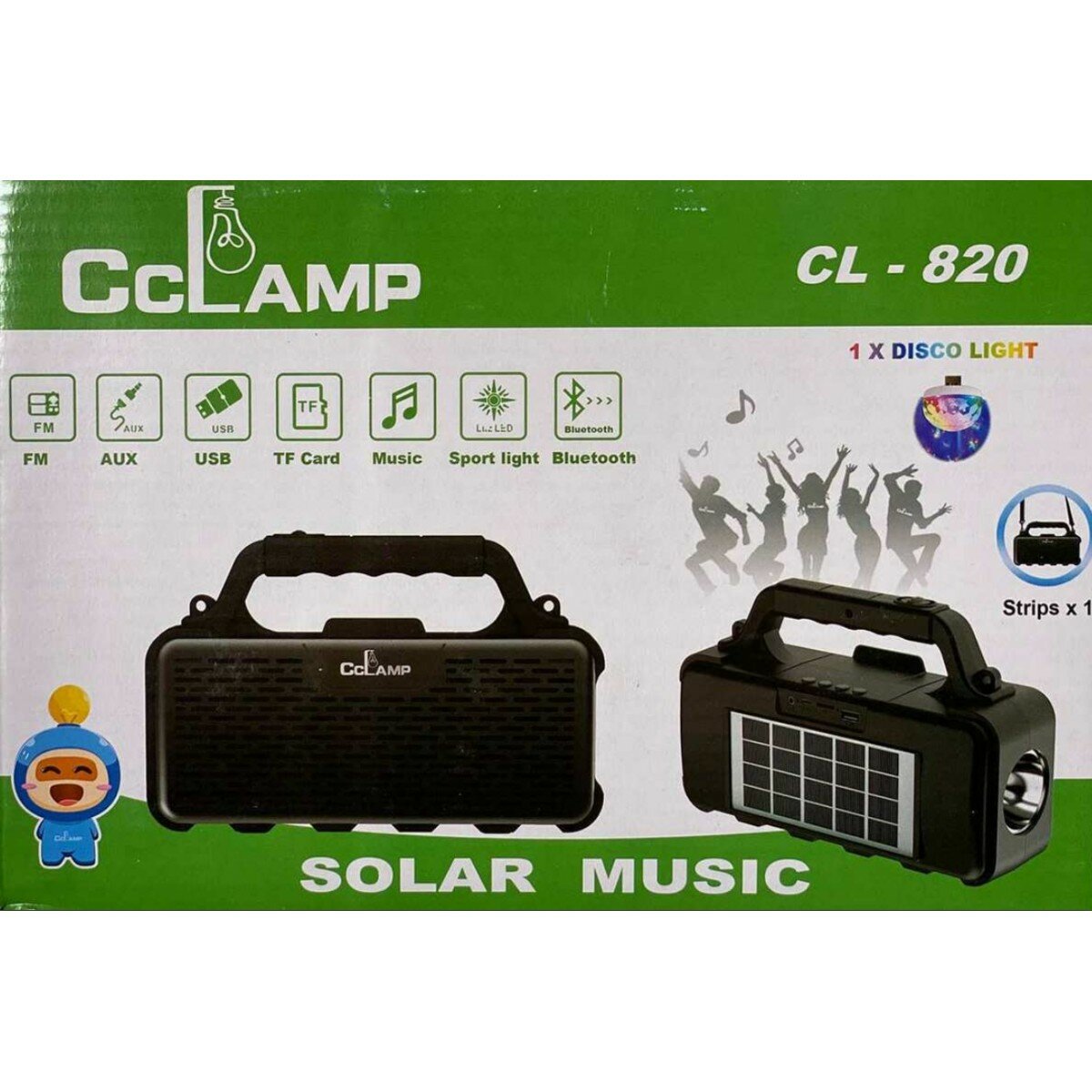 - Комплектация: Фонарь со встроенной солнечной панелью для зарядки, ремешок, бонус–1шт Disco lite